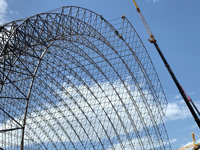 (2)网架加工前应对现场尺寸进行复测,确认无误后方可进行加工、安装;网架制作、运输、安装应遵守《空间网格结构技术规程》JGJ7-2010、《钢网架信阳螺栓球节点》JG/T 10-2009、《钢网架信阳螺栓球节点用高强度螺栓》 GB/T 16939-2016、《信阳钢结构信阳工程信阳施工规范》 GB50755-2012、《信阳钢结构信阳工程信阳施工质量验收标准》 GB50205-2020。